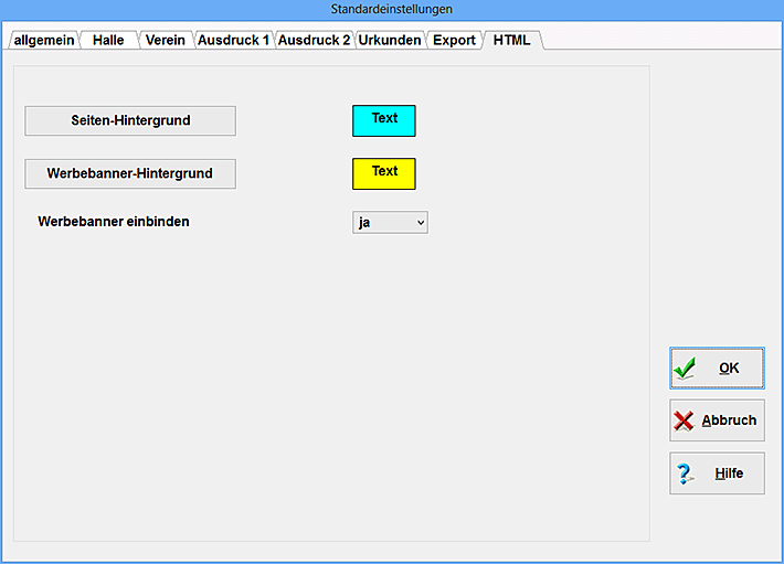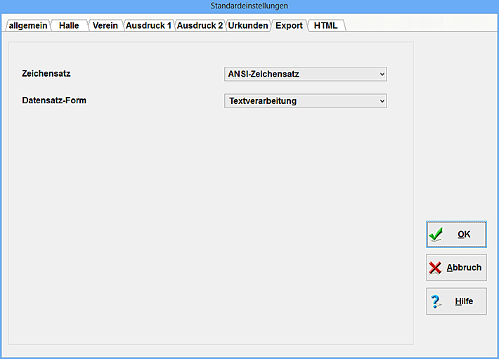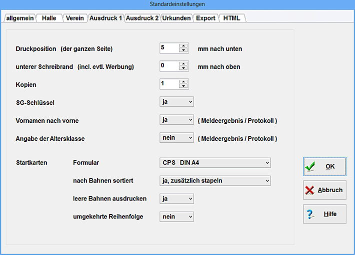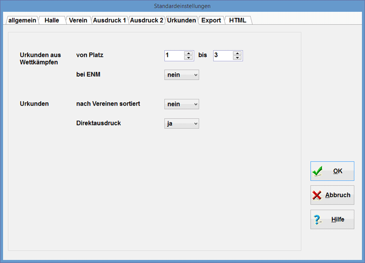 Beim Export der verschiedensten Urkunden und Listen können Sie mit Hilfe der Standardwerte verschiedene Richtungen vorgeben.