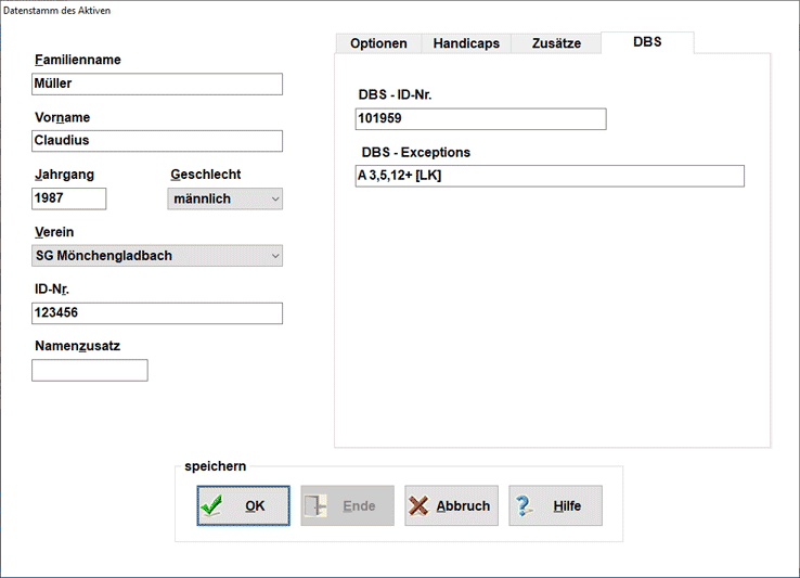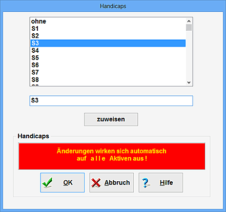 An dieser Stelle des Programms können Sie die einzelnen Handicaps [Kapitel 6.1, Kapitel 6.7] auf die Aktiven verteilen.