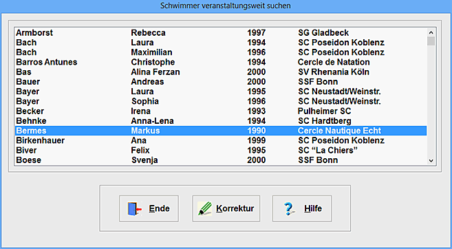 Manchmal wissen Sie zwar, welche Korrekturen Sie bei welchem Schwimmer vornehmen sollen - die Suche nach diesem Schwimmer gestaltet sich aber schwierig, da Ihnen der betreffende Vereinsnamen fehlt.