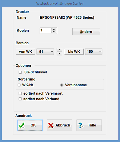 Die Sortierung der Liste kann wahlweise nach WK-Nummern oder nach Vereinsnamen erfolgen.