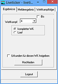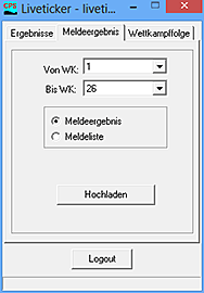Meldeergebnis Ist das Meldeergebnis spruchreif [Kapitel 5.2], so soll dieses auf den Livetiming-Server geladen werden. Für den aktuell ausgewählen WK-Bereich haben Sie die Wahl, ob Sie
